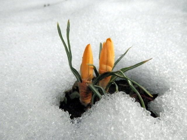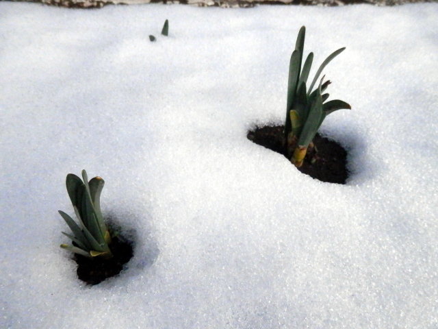雪の中からチューリップやクロッカスの芽も顔を出しています。