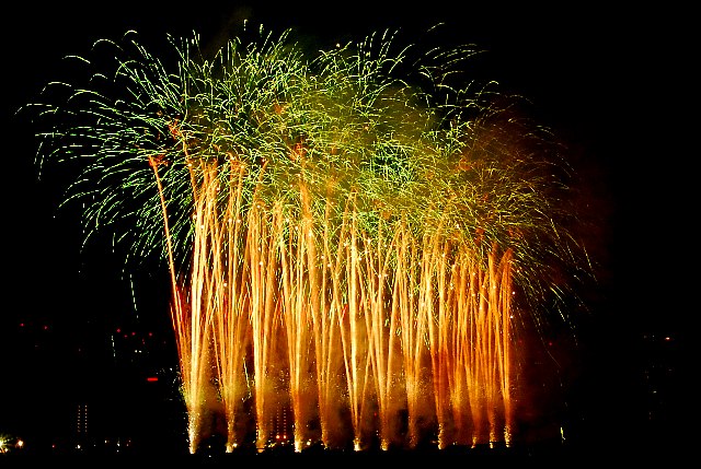 風下で見ていたので、花火が続けてあがると煙の中でした。
