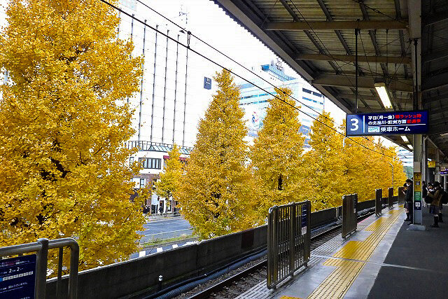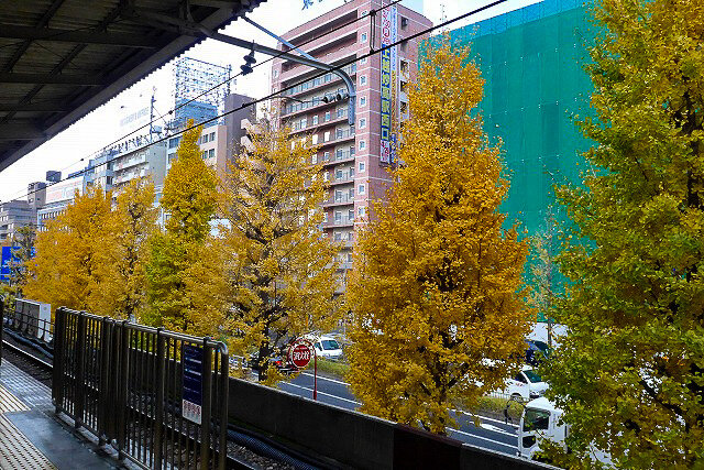 駅前の紅葉